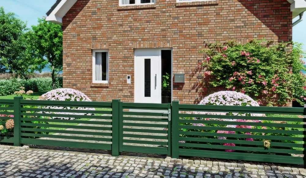 Für viele Eigenheimbesitzer sind beim Vorgartenzaun ein exklusives Design, Langlebigkeit und Witterungsbeständigkeit wichtig. Sie entscheiden sich für , da diese so gut wie keinen Pflegeaufwand verursachen, praktisch wartungsfrei sind und auch nach vielen Jahren tadellos aussehen. Ein Modell, auf das die genannten Eigenschaften zutrifft, ist der wind- und wetterfeste Alu Zaun Westland in Tannengrün (ähnlich RAL 6009). Er stammt von einem norddeutschen Traditionsbetrieb, die Herstellung erfolgt auftragsbezogen.