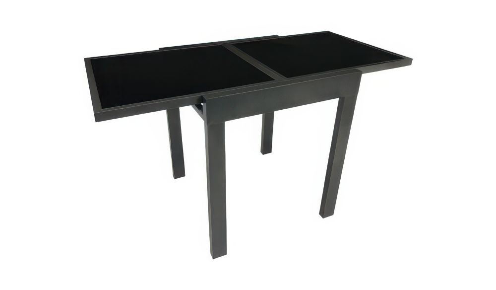 Balkontisch ausziehbar auf 130 cm mit Tischplatte aus schwarzem Sicherheitsglas