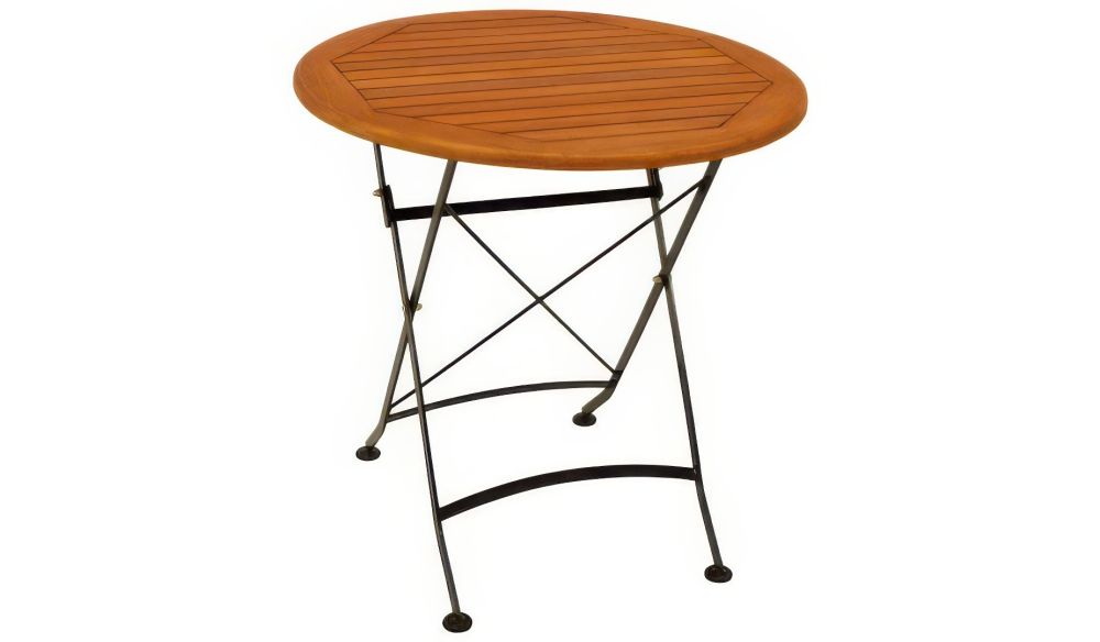 Der runde Biergarten Tisch ist für kleinere Balkone und Terrassen ideal