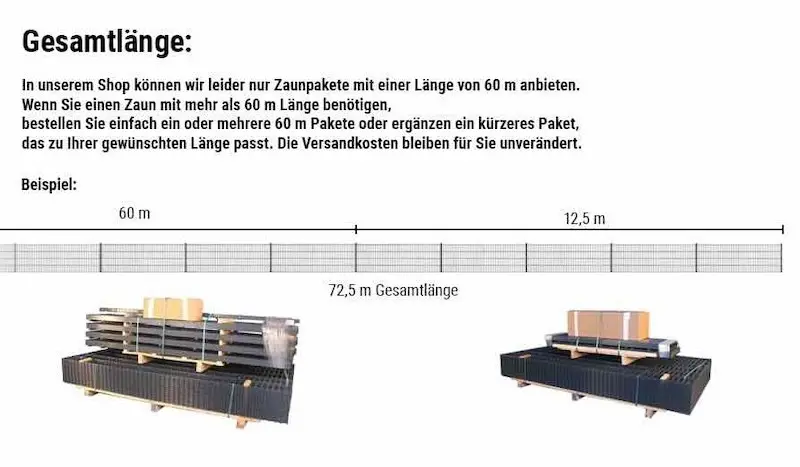 - Aufbau klappt: Bis zur abgezählten Konterplatte sind Matten, Pfosten und erforderliches Zubehör in den Sets enthalten. Nur Beton sowie gegebenenfalls Schrauben und Dübel für Bodenplatten müssen bauseitig gestellt werden.