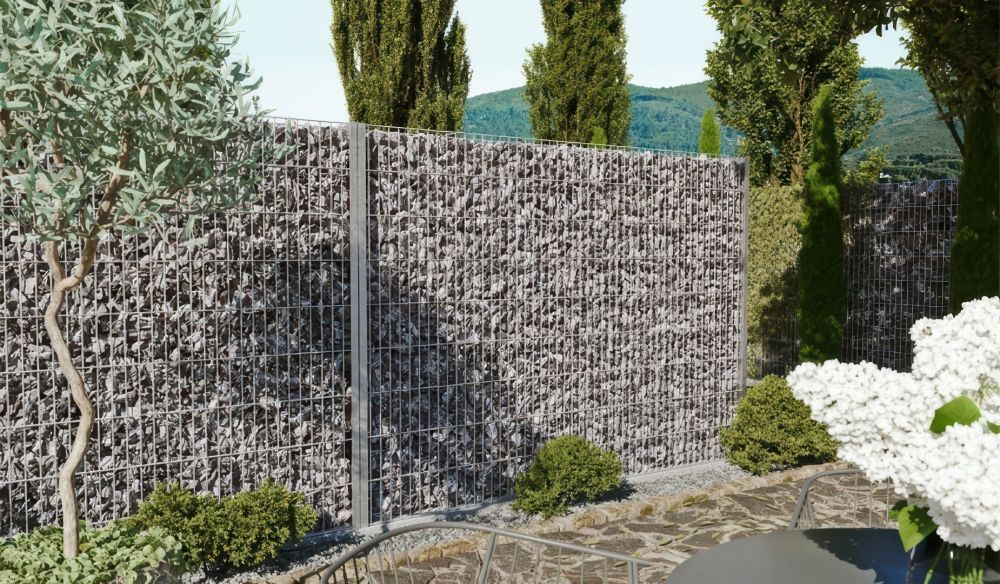 Gabionen Komplettset mit 8/6/8 mm Doppelstabmatten, Gabionenpfosten und Zubehör