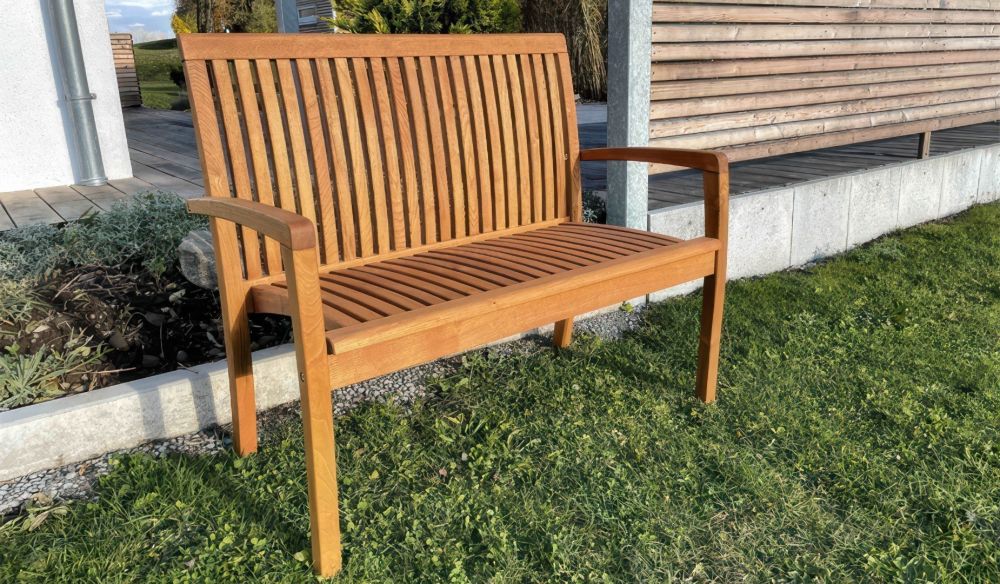 Nicht zuletzt auch deshalb, weil Ihre neue Gartenbank bei der Herstellung mit braunem Pflegeöl eingelassen wurde. Das Öl betont nicht nur den spezifischen Holzcharakter der Gartenbank, was sehr anmutig aussieht, es erhöht zudem die Wetterfestigkeit und schützt vor Vergrauen und Verschmutzungen. Leider lässt die Wirkung des Pflegeöls mit der Zeit nach - Holzbänke (sowie alle anderen Outdoor-Möbel aus Holz) sollten Sie also generell in regelmäßigen Abständen mit Holzschutz behandeln. Sie werden sehen, es lohnt sich.