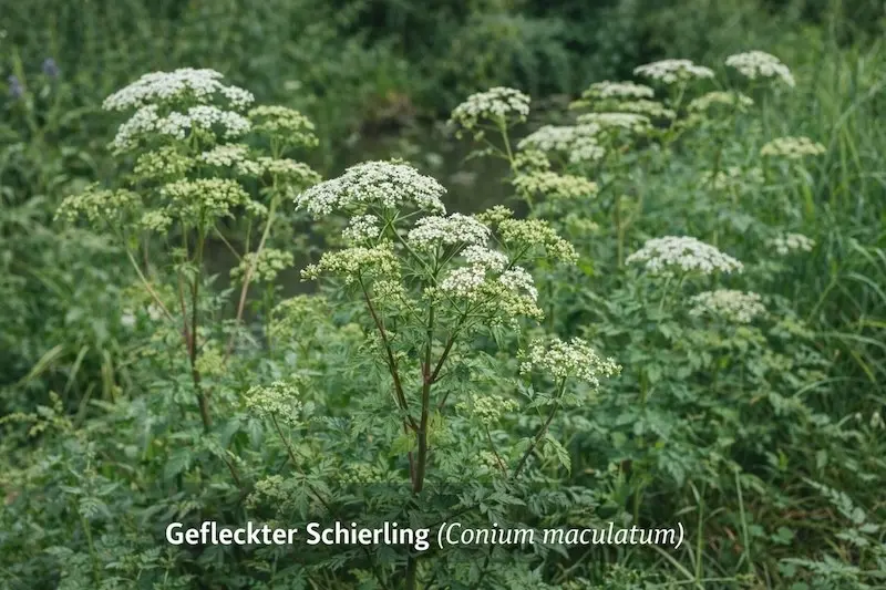 - Merkmale: Wie der Wasserschierling ist auch der Gefleckte Schierling äußerst gefährlich. Bereits in der Antike nutzte man dessen Gift, um zum Tode Verurteilte hinzurichten. Der Gefleckte Schierling kann bis zu 2 Meter in die Höhe wachsen und verbreitet einen auffallend starken Geruch. Auf Ackerflächen und Schutthalden ist der Schierling ebenso zu finden wie an Wegesrändern und in naturbelassenen Gärten.