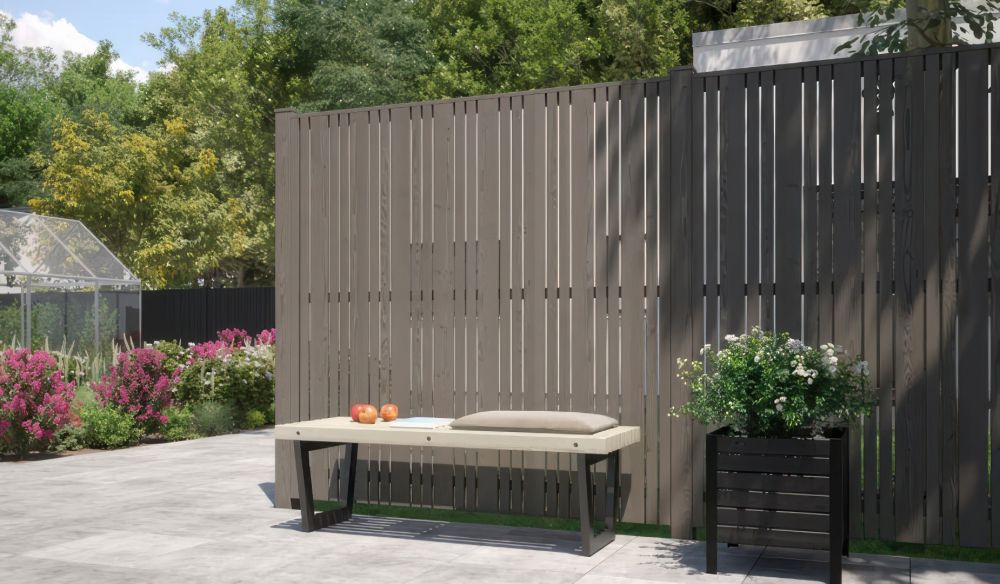 Sie genießen Ihre Terrasse als zweites Wohnzimmer, möchten aber nicht, dass jeder vorbeigehende Blick direkt mit am Tisch sitzt? Der graue Zaun Tangent bietet Ihnen genau diese Balance: Er schafft Privatsphäre, ohne den Außenbereich abzuschotten. Die halbtransparente Konstruktion wirkt leicht und modern, lässt bewusst etwas Durchsicht zu und hält dennoch störende Einblicke zuverlässig fern.