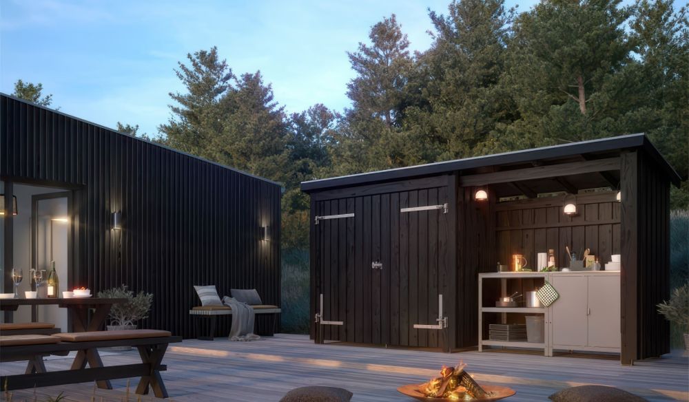 Modulares Holz Gartenhaus im skandinavischen Design mit variationsreicher Ausstattung