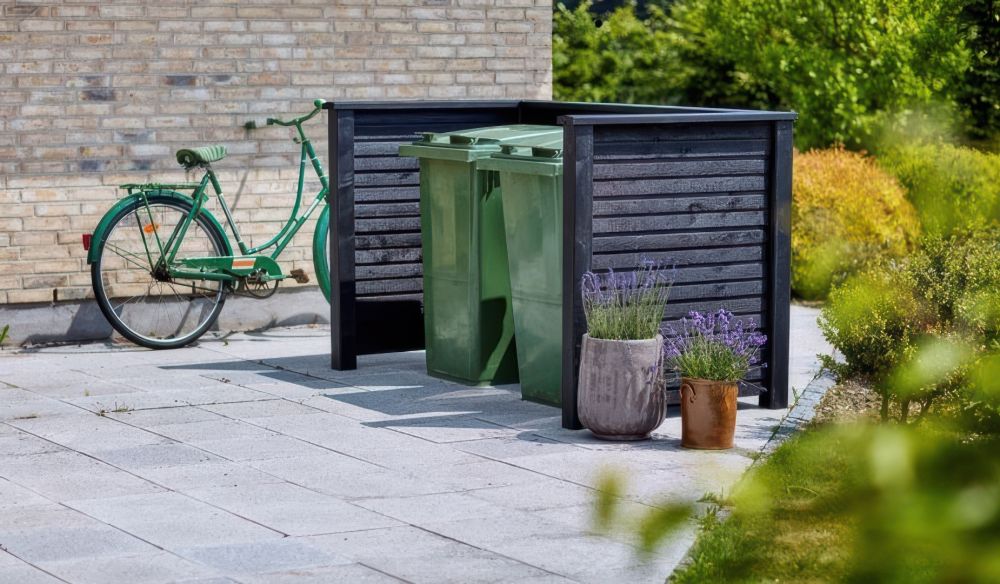 Ganz nach Bedarf: Holz Mülltonnenverkleidung für zwei oder drei 240-Liter-Behälter