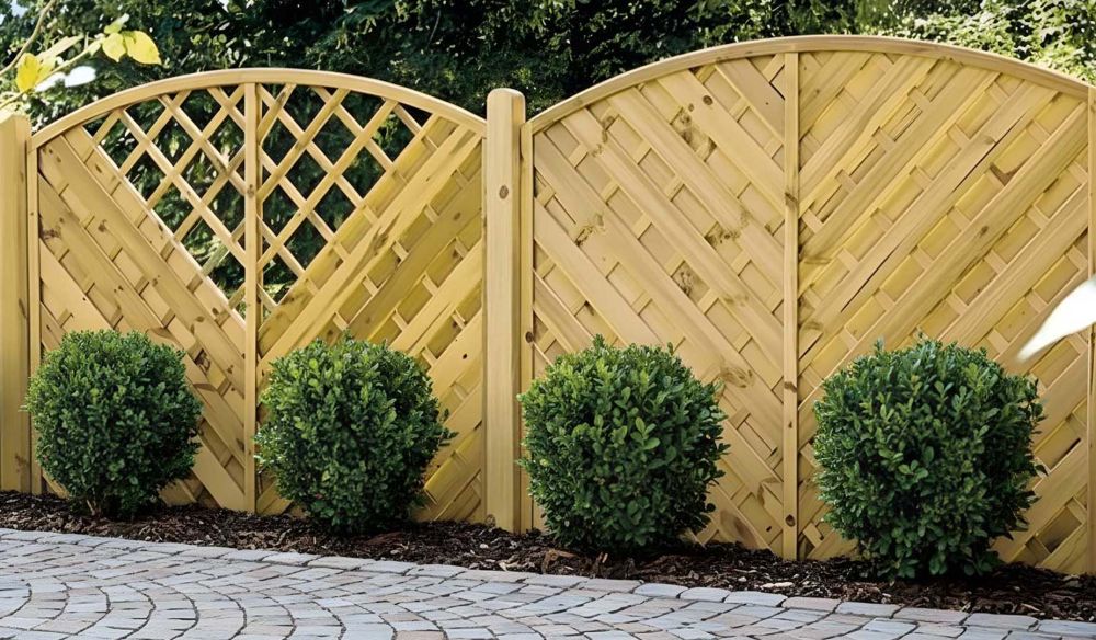 Der Holzsichtschutz Berlin Diagonal ist als 7-teilige Zaunserie konzipiert und bietet Ihnen viele Möglichkeiten, Ihren Sichtschutz im Garten individuell zu planen. Sie erhalten sechs fertig montierte Sichtschutzelemente und ein 100 cm breites Gartentor mit dekorativem Rundbogen. Damit lassen sich Terrassen, Grundstücksgrenzen oder seitliche Abschlüsse harmonisch und durchgängig in einem Design gestalten.