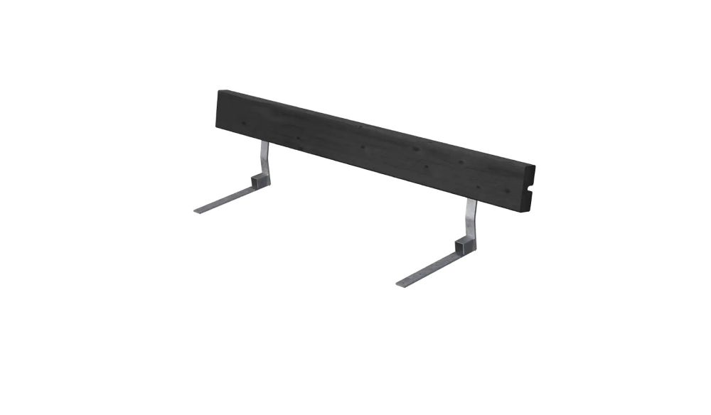 Die Rückenlehne basiert auf einer 42 x 116 mm Holzplanke. Sie ist an zwei L-förmigen Beschlägen aus feuerverzinktem Stahl befestigt. Diese werden an den jeweiligen Sitzflächen fixiert. Schrauben sind im Lieferumfang enthalten.