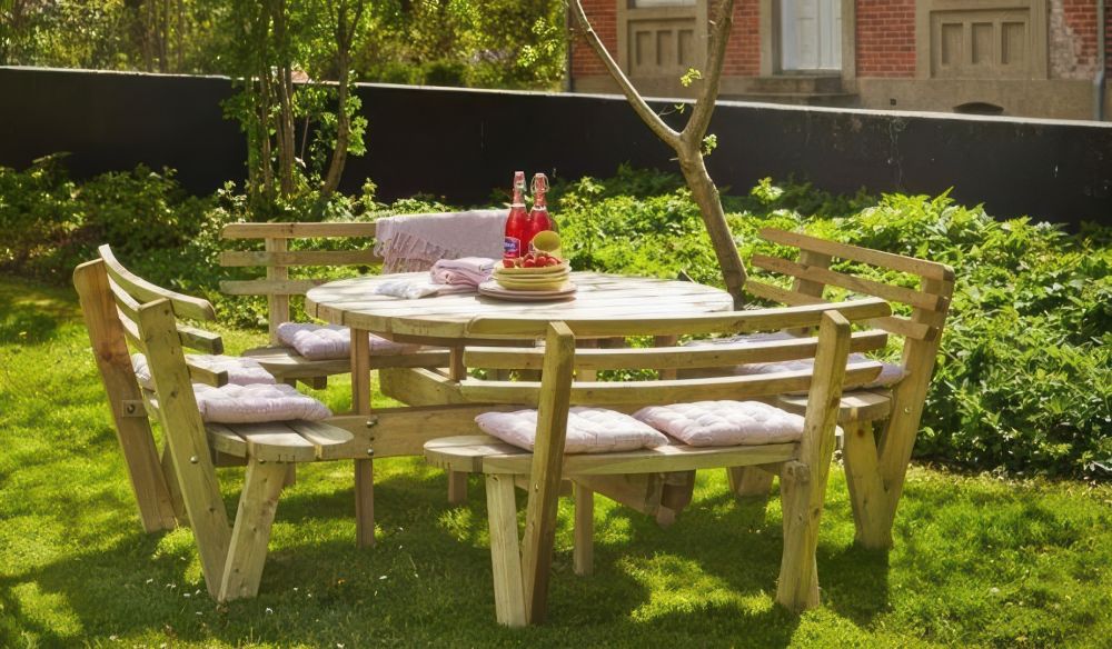 Runder Kombi Picknicktisch aus kesseldruckimprägniertem Nadelholz für 8 Personen
