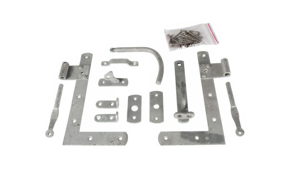 | Lieferumfang | Kompletter Beschlagsatz inkl. Torbänder, Kloben, Riegel und Montagezubehör |