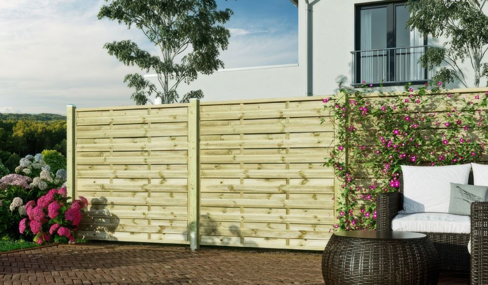 - Das Zaunfeld im Standardmaß 180 x 180 cm bietet durch seine geschlossene Lamellenfüllung einen sehr guten Sichtschutz im Garten.