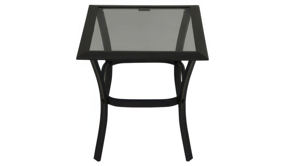 Der Outdoor Beistelltisch zeichnet sich durch sein schwarz beschichtetes Aluminiumgestell und eine graue Glasplatte aus, die nicht nur optisch ansprechend, sondern auch besonders pflegeleicht und witterungsbeständig sind. Aluminium ist bekannt für seine Leichtigkeit und gleichzeitige Robustheit, was den Tisch sowohl einfach zu bewegen als auch widerstandsfähig gegen Korrosion und Witterungseinflüsse macht. Die Glasplatte fügt eine elegante Note hinzu und ist gleichzeitig einfach zu reinigen