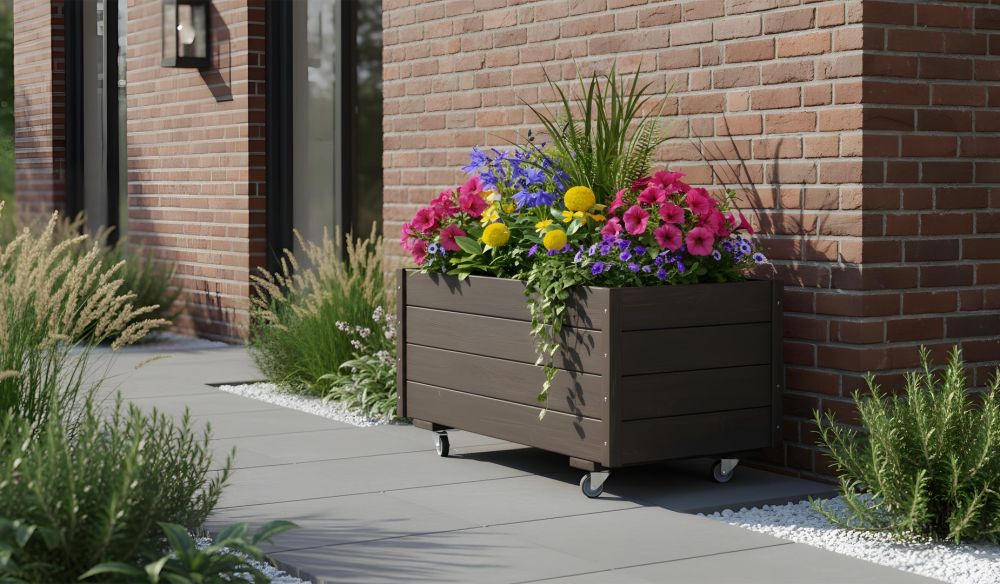 Großer Pflanzkasten mit Rollen zur flexiblen Gestaltung von Terrasse und Veranda