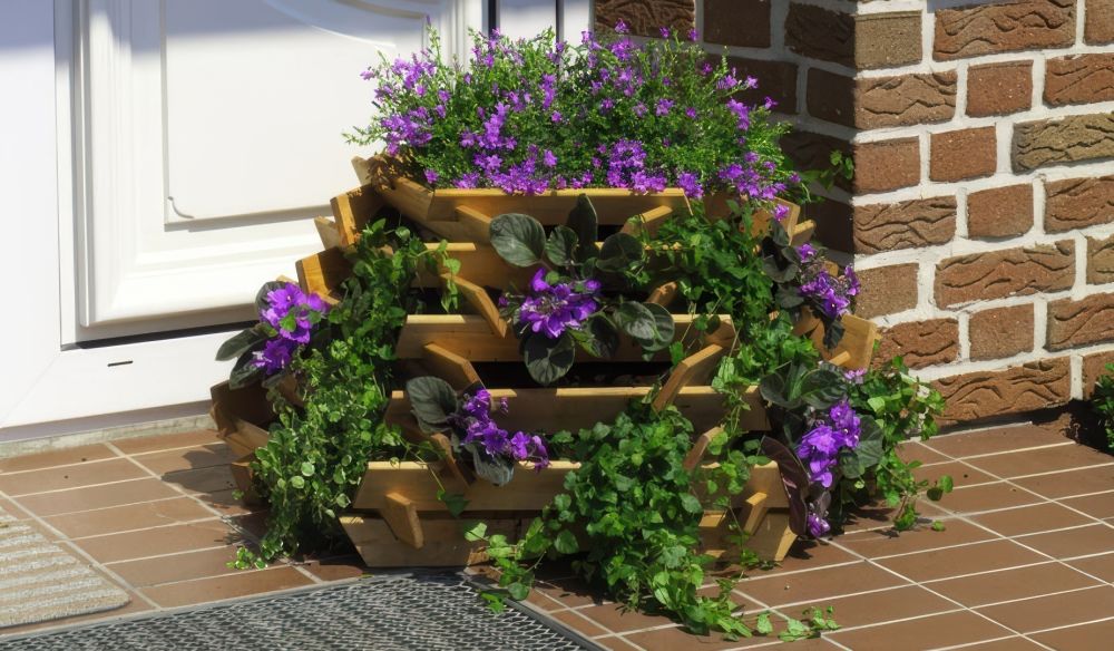 Die wetterfeste Holz Pflanzpyramide bei meingartenversand.de bestellen