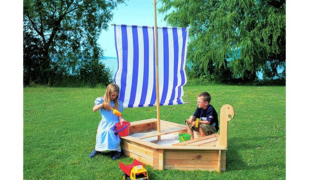 Kinder fühlen sich in einem Garten besonders wohl, wenn sie einen eigenen Bereich zum Spielen und Toben haben. Das Sandkasten Schiff Reichberg bietet Ihren Kinder eine eigene kleine Welt, in der sie ihre Kreativität ausleben und voller Lebensfreude spielen können. Das Modell ist kindgerecht und bietet neben vielfältigen Entfaltungsmöglichkeiten hohe Sicherheitsstandards. Egal, ob die Kinder als gerissene Piraten oder starke Wikinger auf große Segelfahrt gehen oder einfach ein paar schöne Sandburgen bauen möchten: Das Sandkasten Schiff ermöglicht all das, indem es die Fantasie der Kleinen anregt. In einer Kajüte finden die Kinder Schutz vor intensiver Sonne, leichtem Regen und neugierigen Eltern. Mit diesem Schiff bereiten Sie Kindern eine riesige Freude.