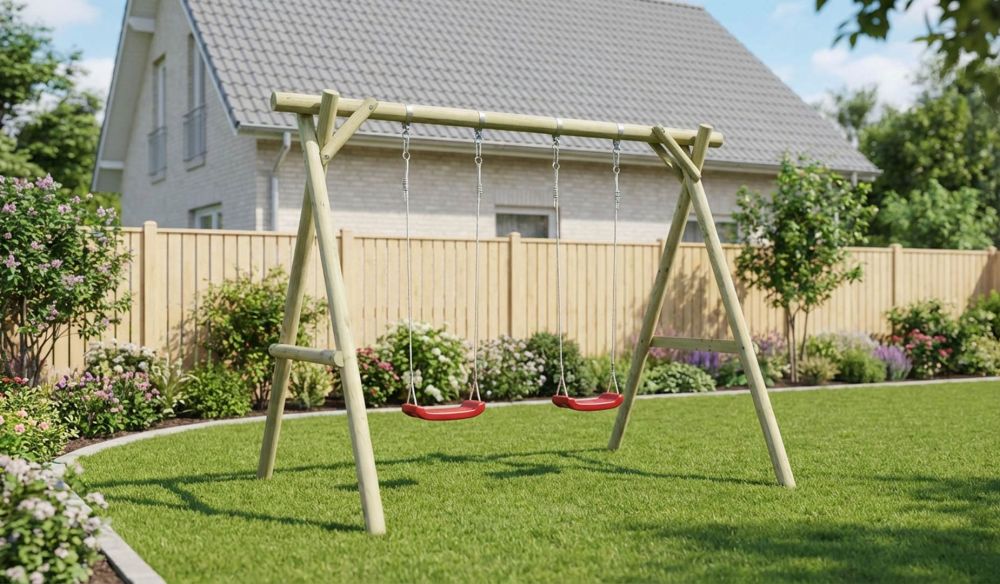 Ob Geschwister, Nachbarskinder oder beste Freunde: Die 300 x 190 x 220 cm Doppelschaukel schafft Platz für gemeinsames Lachen, für Bewegung an der frischen Luft und für Erinnerungen, die bleiben. Ein fester Ort im Garten, an dem die Kleinen einfach Kind sein dürfen.