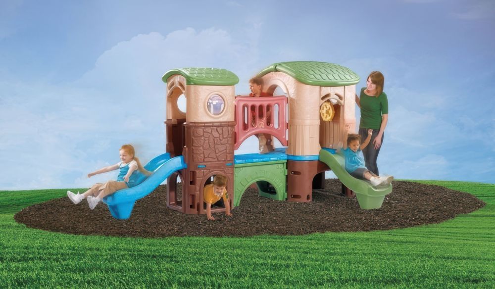Spielanlage aus Kunststoff für zwei- bis sechsjährige Kinder: Mit zwei Rutschen!