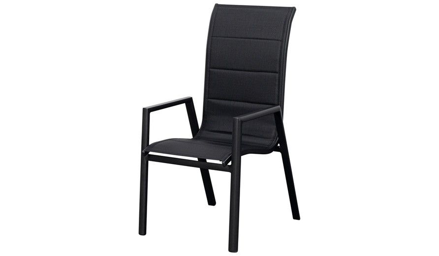 Im Vergleich zu klassischen Gartensesseln bietet der 55 x 65,5 x 106,5 cm Stapelsessel Hochlehner eine stark verlängerte Rückenlehne. Die Lehne stützt den Rücken und ermöglicht eine besonders entspannte Haltung - ideal für lange Abende auf der Terrasse oder ein ausgedehntes Sonntagsfrühstück im Garten. Die gepolsterte Kunstgewebebespannung trägt darüber hinaus zu einem rundum angenehmen Sitzgefühl bei. Zusätzliche Auflagen sind nicht nötig.