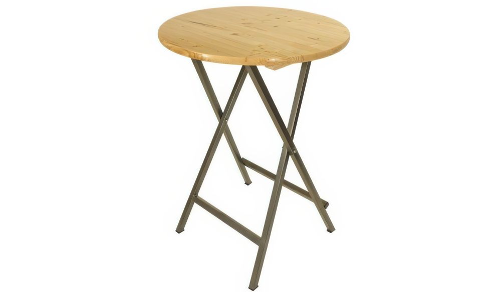 Robuster Stehtisch klappbar mit ø 78 cm Platte aus lackiertem 28 mm Nadelholz