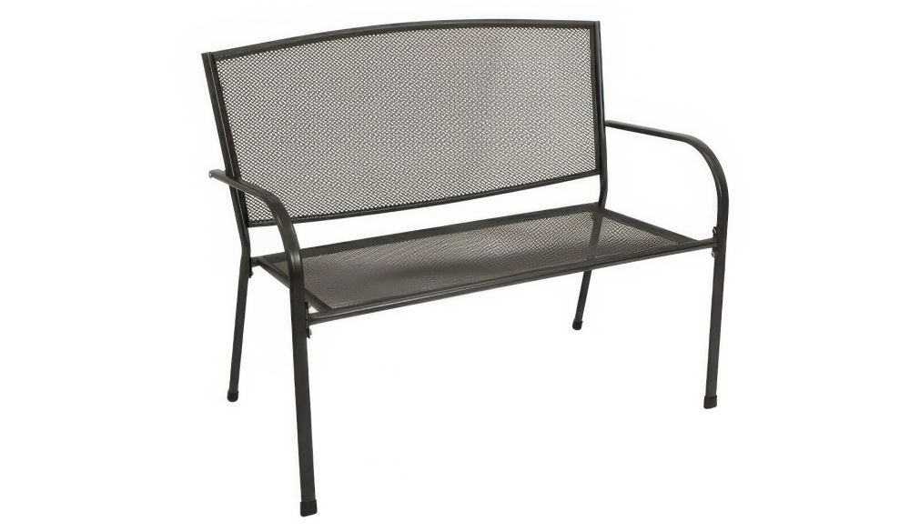 Dunkelgraue Streckmetall Gartenbank mit Armlehnen für zwei Personen