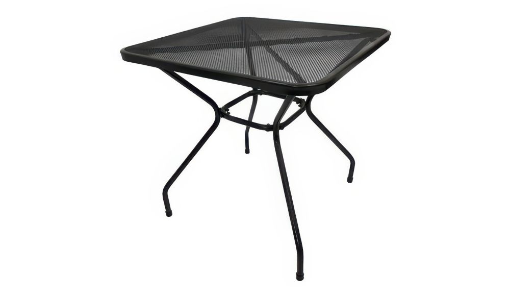Quadratischer Streckmetall Gartentisch mit elegantem Fußteil