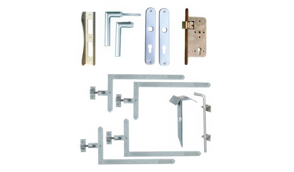 Tipp: Einen einfachen Beschlagsatz mit Riegel für Doppeltore finden Sie .