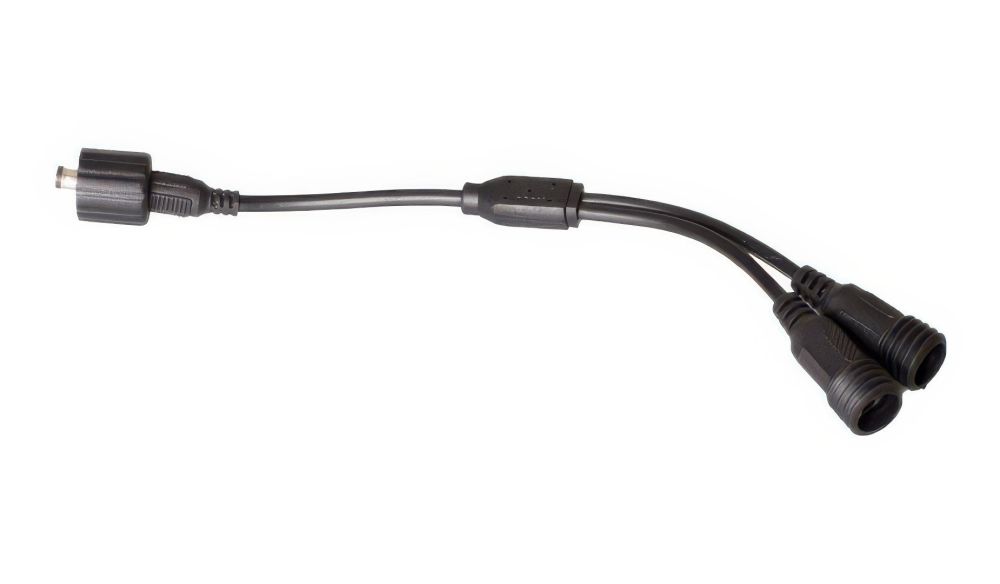 Mit Hilfe des 20 cm Verteilerkabels Zaunpfosten Beleuchtung lassen sich mehrere Lichtleisten in das System integrieren: Die Y-Weiche stellt Abzweigungen im Verlängerungskabel her. Sobald zwei oder mehr LED-Leisten zum Einsatz kommen, brauchen Sie (mindestens) einen Verteiler.