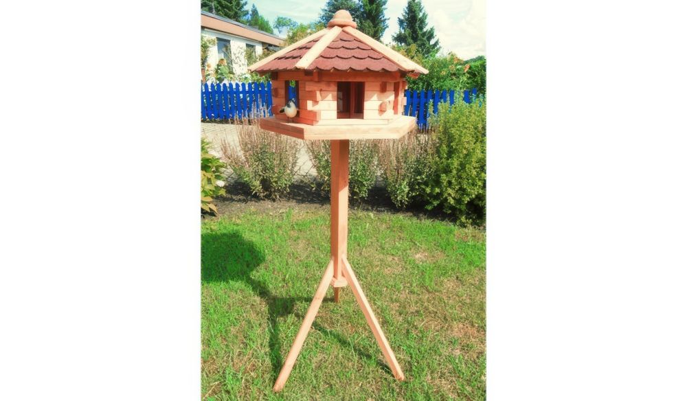 Das aus Holz gefertigte Vogelhaus Orlau überzeugt nicht nur die gefiederten Besucher, sondern auch Gartenfreunde, die auf der Suche nach einem funktionalen und formschönen Ort für die Fütterung von Vögeln sind. Überzeugen Sie sich einfach selbst und stöbern Sie im Onlineshop, denn hier finden Sie eine große Auswahl an Vogelhäusern, die zu Ihren Ansprüchen passen. Das Holz Vogelhaus Orlau besteht aus tauchimprägniertem Fichten- und Kiefernholz, das in einem kontrollierten Wald angebaut und unter ethischen Kriterien weiterverarbeitet wird. Dieses Modell trotz Wind und Wetter, ohne dass das Aussehen in Mitleidenschaft gezogen wird. Sie profitieren von einem rustikalen Look, hohen Materialstandards und einer aufwendigen Verarbeitung. Sie entscheiden, ob es ein Holz Vogelhaus mit oder ohne Ständer sein soll. Dieses verleiht jedem Außenbereich eine individuelle Note. Der stabile Dreibein-Ständer aus Massivholz sorgt auf verschiedenen Untergründen für Standsicherheit und passt auch optisch zum sechseckigen Vogelhaus mit toller Oberflächenstruktur. Bieten Sie Vögeln mit einem Holz Vogelhaus einen ungestörten Platz und freuen Sie sich, wenn Sie in der nächsten Saison zurückkehren.