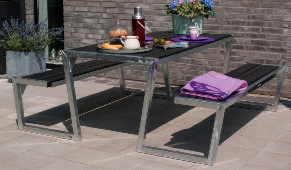 Damit die ganze Familie zusammenkommen kann, bilden ein Tisch für vier Personen und entsprechende Sitzgelegenheiten die perfekte Basis. Mit den Zigma Gartenmöbeln erwerben Sie ein Gartenset, das sich mit seinen schrägen Linien durch einen gleichermaßen leichten und dynamischen Look auszeichnet. Hier folgt die Form der Funktion, denn das Stahlgestell in Zickzack-Form verbindet den Tisch und die beiden Bänke zu einer festen Einheit. Ähnliche Konstruktionen kennt man zum Beispiel von Camping- oder Rastplätzen. Mit dem Unterschied, dass die Zigma Gartenmöbel ungleich hochwertiger sind, als Gebrauchsmöbel für öffentliche Einrichtungen.